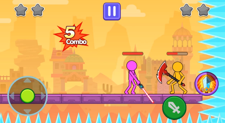 游戏的主角是火柴人和海盗,玩家需要和自己的小伙伴一起对抗更多的强悍的敌人,每过一个关卡都有相应的敌人,根据对方的出招情况,出奇制胜。酷炫的打斗场景,配上相应的背景音乐,自由挑选对手,来一场旷世对决。发挥自己的潜力,将所有的怪物击败,成功过关。