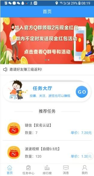 趣悬赏是一款金融理财类app,只要用户有时间,随时都能来领取任务界面也还是非常的简洁,一看就会操作的这种,和玩手机是一样的操作用户看到任务,就来领取,每个任务都会有自己的价码在后台。