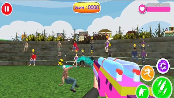 3、玩家的各种武器都是独特的水枪,射击敌人并淘汰它们,让你能取得最终的胜利。