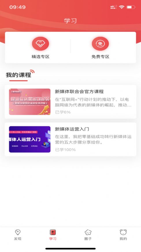 免费的精品课堂为学生们提供了学习的课程,不收取费用,还可以检测自己是否具备新媒体人的资格,学习完成之后,可以领取你的学习证书,平台上会每天更新专业的新媒体知识,让大家进行自主学习。