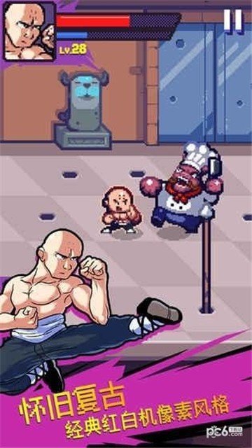 1、复古卡通像素游戏画风,在游戏中玩家可以解锁各式各样的角色人物开始刺激的格斗。