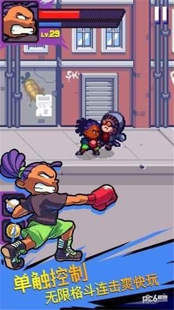格斗街区是一款动作格斗类型的角色扮演手机游戏,怀旧复古,经典红白机像素风格,回味童年红白机美好记忆,街霸,双截龙,快打旋风。无限格斗连击爽快玩,精巧操作设计,无论是连击,跳击,还是终结技,均可单点出奇迹。特色英雄,对决闯关战斗不腻味,独特鲜明的角色,凸显大城市小市民的英雄之路。联机合作,在线呼朋唤友乐翻天,一键呼叫好友,携手闯关不寂寞,一起围殴boss。