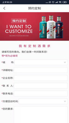 1、除了购买成品的酒产品以外,这里还有私人定制酒的特色服务,用户只需要将自己的要求一一输入确认暂时预定就可以买到你想要的专属酒了,需要提前预定哦;