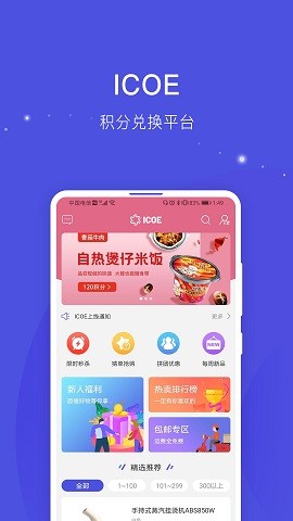 ICOE软件是一款拥有海量商品的购物商城,商品种类非常齐全,想买什么东西可以直接线上下单,非常方便快捷,能给你带来非常好的购物体验,商品质量也是有保证的哦,可以放心购买哦,每次交易成功后,还会有积分奖励哦。