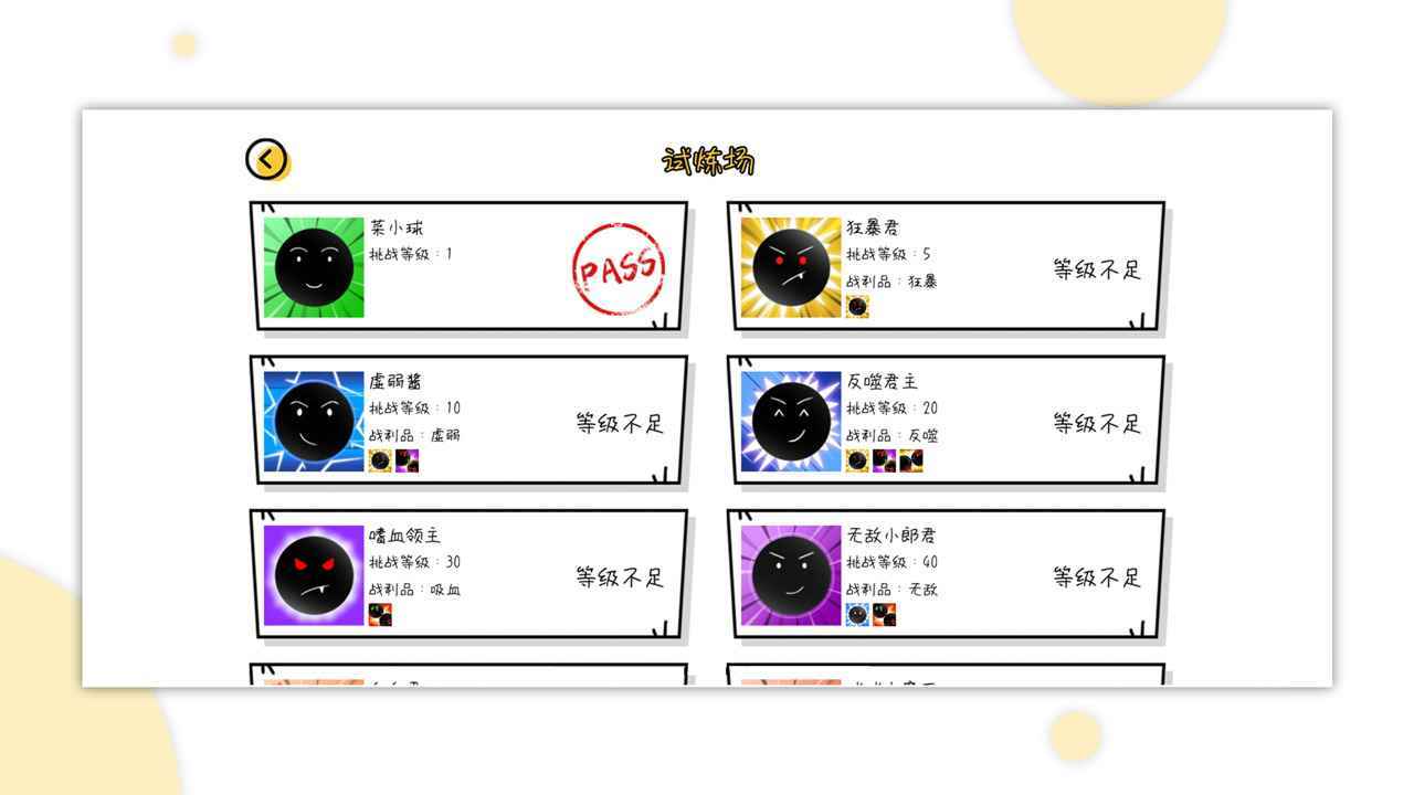 3、着不断的挑战关卡可以解锁更多的球球皮肤,控制这些可爱的相爱的球球触碰到一起。
