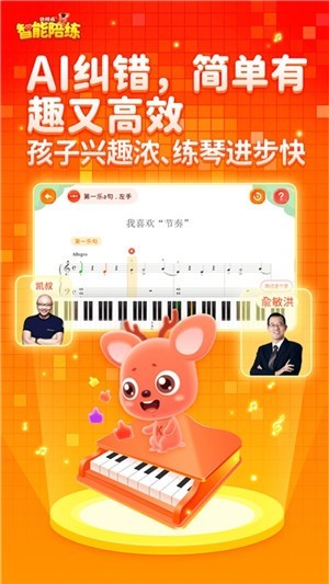 智能小鹿陪伴孩子练琴,边弹边纠正错音,错节奏,督促孩子改正,实时激励孩子,让孩子 学琴更主动,练琴更高效! 孩子练琴弹错了不知道,练习效果越来越差怎么办?使用快陪练智能陪练,智能小鹿实时纠 错,督促孩子改正,每次练习都会有更多的成长