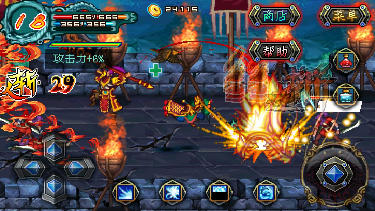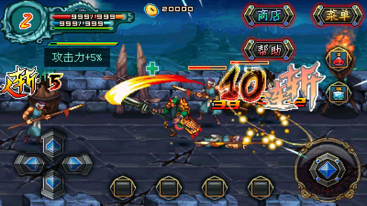 雄霸三国之神鬼乱舞是一款三国题材的街机类型过关安卓rpg游戏,复古的游戏画面,真三国无双式的热血战斗,三国猛将悉数登场。无数经典战役,再现风起云涌的乱世时代。收服猛将,群雄鏖战,你将开创新的历史,雄霸三国,君临天下。多达16名武将自由挑选,四大战役、极限挑战、多达50个小时的超长游戏时间,数十个华丽技能、数百件装备、成就、称号,积分排名PK,挑战手游的厚道极限。