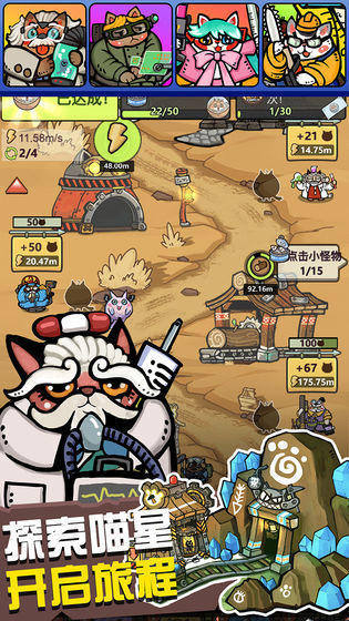 2、卡通的游戏画面,在这里会有很多十分可爱的猫咪,与一些怪物来进行作战。