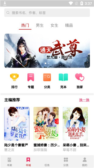 满足不同读者需求,离线缓存追书不费流量,连载小说实时更新。