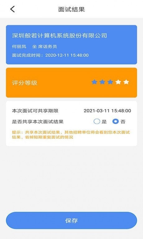 2、对于还在找工作的人来说,可以通过手机来完成面试操作,不用出门就可以完成,简化了找工作流程;