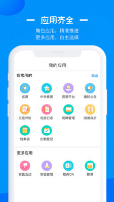 2、为教师带来更高效的办公体验,让线上教育更轻松,集成了智慧校园中的移动应用。