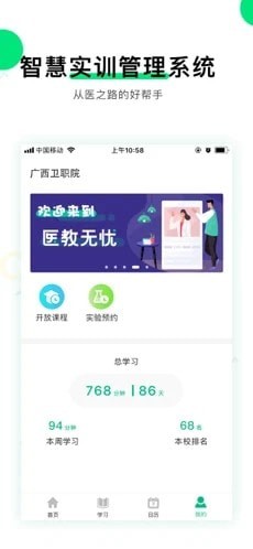 智慧实训管理系统是一款非常实用的实训管理软件。是专为广西卫职院人员打造的。软件功能非常全面,支持课程预约、在线签到、课表查询、实训管理等一系列功能。用户可软件进行课程和实验的预约,可以查看规培、实习的轮科安排,也可以在线自主学习,提高技能和相关知识点的掌握程度。