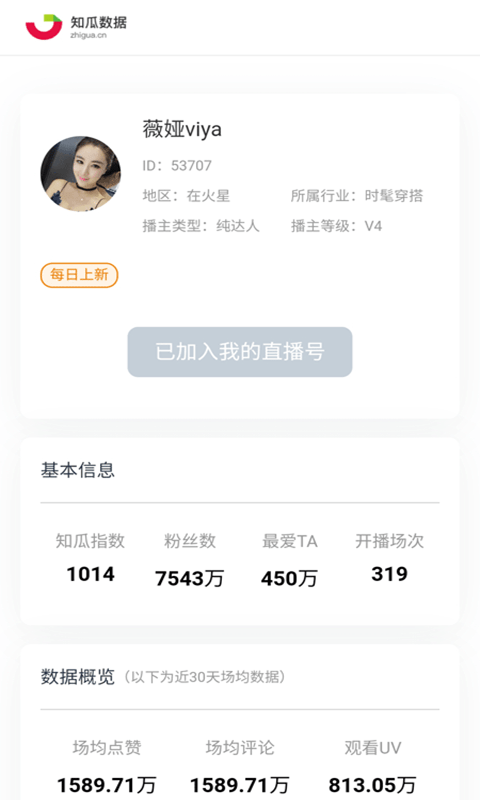 知瓜数据app多维度可视化数据分析,找出直播症结所在。