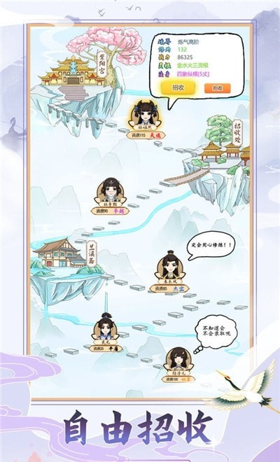 2.想要发展壮大,招兵买马是第一步,提升你的门派知名度;