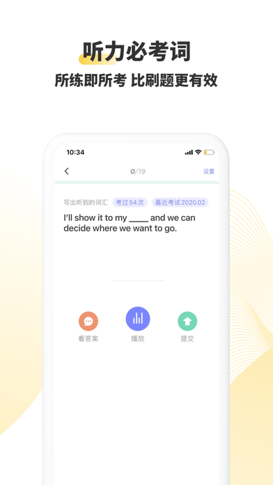 聚点考试词汇,即考什么,背什么!听力词汇100%来自“剑桥雅思真题3~15”和近7年(2012年至2019年)雅思机考答案的“听力必考词”模块。练习模式按考试出现的频次和场景词汇而分类,让你能够更高效和更有针对性的背诵全部听力核心重点词。