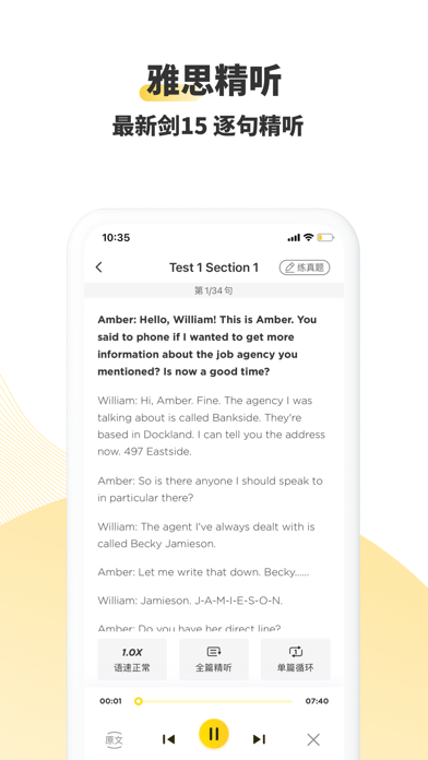 文章均来自历年剑桥雅思真题,按考试时间排序,提供逐句循环播放,倍速播放等练习功能,让你练习事半功倍;同时,提供历年真题的练习题目以及答案解析,让你随时随地刷听力真题,高效备考。