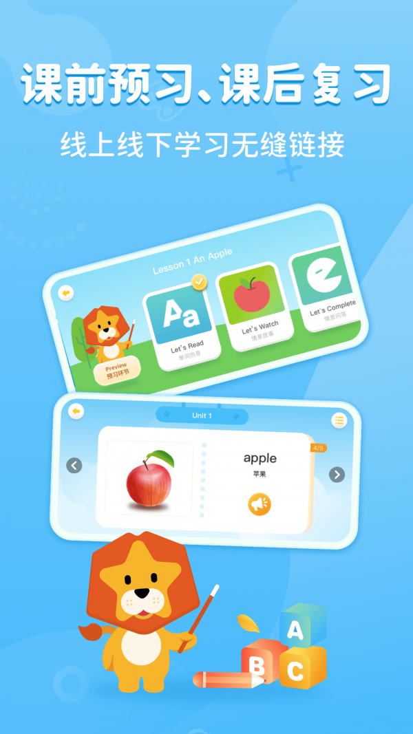 线上线下学习无缝链接,教材设计循序渐进,保障学习效果。有需要的家长朋友欢迎下载给孩子使用!