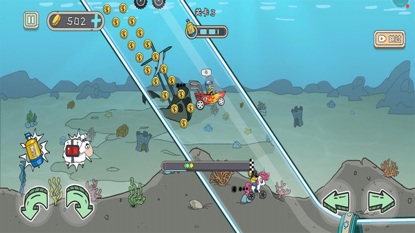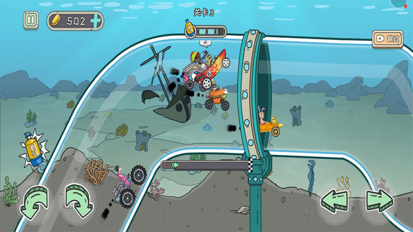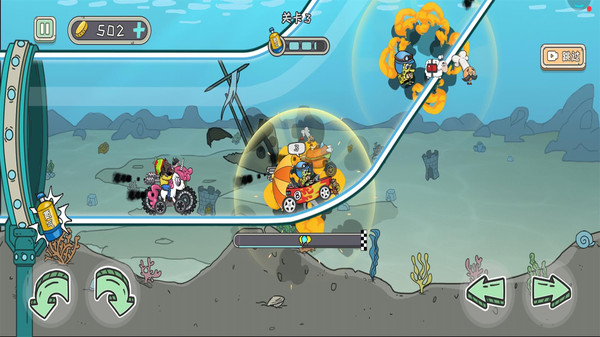 1、游戏的地图场景多变,卡通的画风,奇怪的山坡,玩家要操控飞车来爬山。