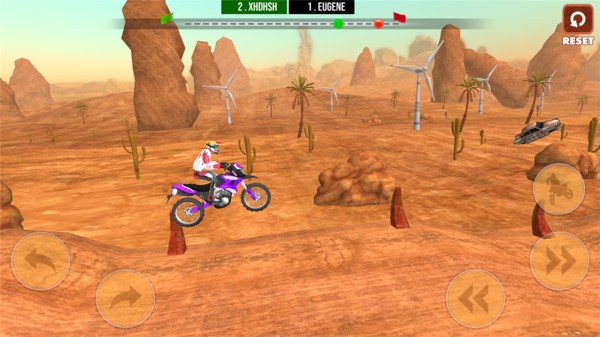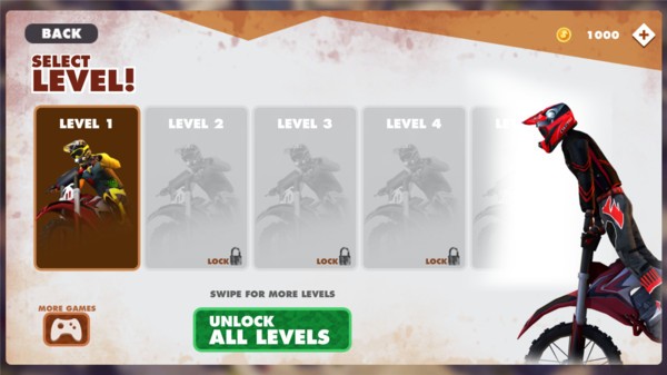 摩托越野大赛是一款3D风格的摩托驾驶手游,玩家在游戏中需要驾驶功能强大的越野摩托开始挑战。顶级的游戏画面搭配简单的操控方法,让所有年龄段的玩家都能够更加轻松的上手。