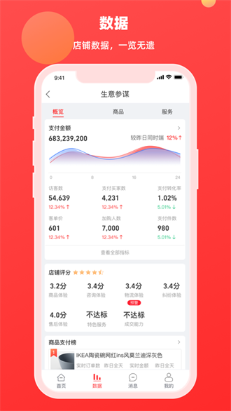 生意参谋:商家可以通过应用浏览店铺经营数据、商品流量销量数据、营销活动和服务数据,以便更好地理解店铺运营状况。