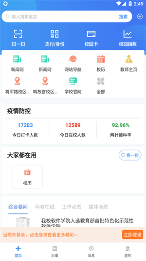 对于政务相关的信息一键查询,帮助阅读信息、查询校园卡余额、转账充值、查询网络费用、流量余额等,人性化的业务内容体验,能够随时随地进行校园费用的查询,还有众多的充值和转账的服务。