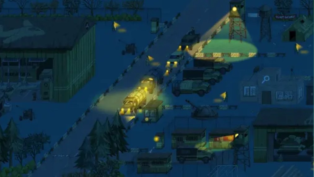 1. 沉浸式夜间巡逻机制:游戏独创夜间专属玩法,玩家需在黑暗中利用手电筒、紫外线灯等工具检查文件,战略性地分配资源以应对突发状况,如油罐车走私或军事装备藏匿等高风险任务。