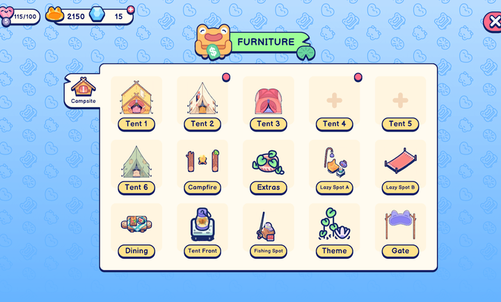 1. 高自由度场景定制:支持帐篷、家具、装饰的个性化搭配,玩家可自由规划露营地布局,例如用“花丛拱门”划分功能区,或通过“秋千”“篝火堆”等特色装饰打造主题区域,解锁“童话森林”“海滨度假”等多样风格。