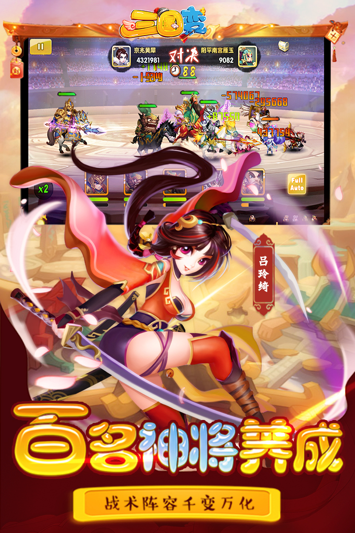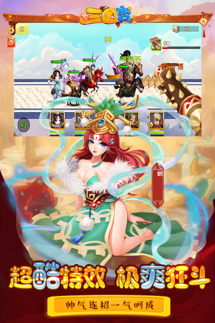2、高清立体的游戏画面,上百种武将随意组合搭配,强大的组合技能特效释放全屏。