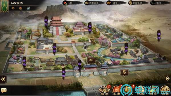 1、玩家作为太守治理一座城池,为开局时选择的魏蜀吴三大势力之一效力,可以通过城门-征伐与其他的势力的玩家交战并且可以通过迁城选项来选择不同的地形加成以获得对应的资源。每天签到可以得到一些资源,保持在线时也会发生一些稀有事件让您得到各类资源。城门和农田会持续地为您提供铜钱和粮草供您使用。