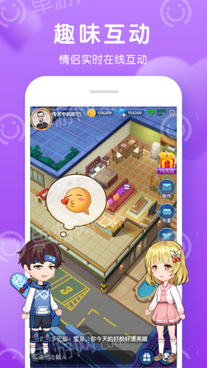这是一个情侣线上“同居”的恋爱玩法的游戏,你和另一半在这里要努力打工赚钱哦!