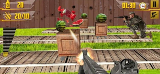 所以现在是时候把枪握在手中作为终极射手,用枪击中移动目标了。你必须证明自己是一个固定目标的射击专家,用直升机飞行和旋转。西瓜射击三维游戏是唯一一款包含现代水果射击冒险游戏所有新功能的第一人称射击游戏。还有一个无止境的模式,你可以在那里切水果而不受障碍,比如炸弹和炮弹。这个3D射击游戏也适合最喜欢新射击游戏的枪手。