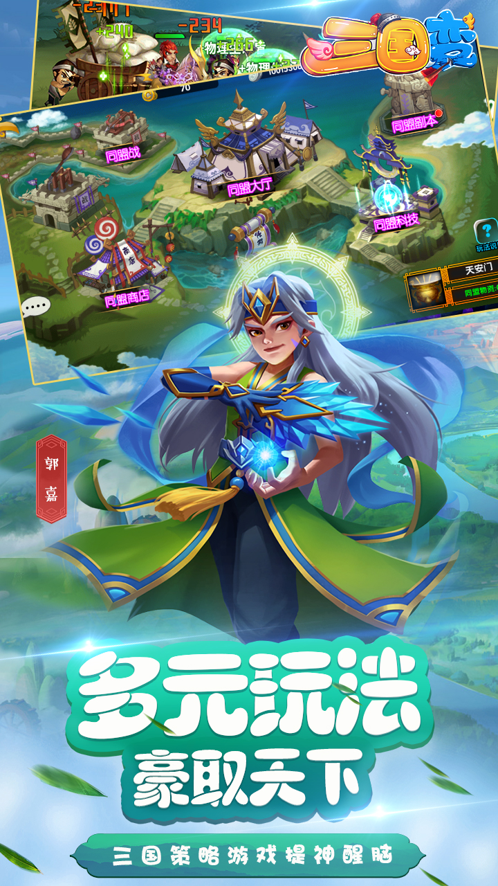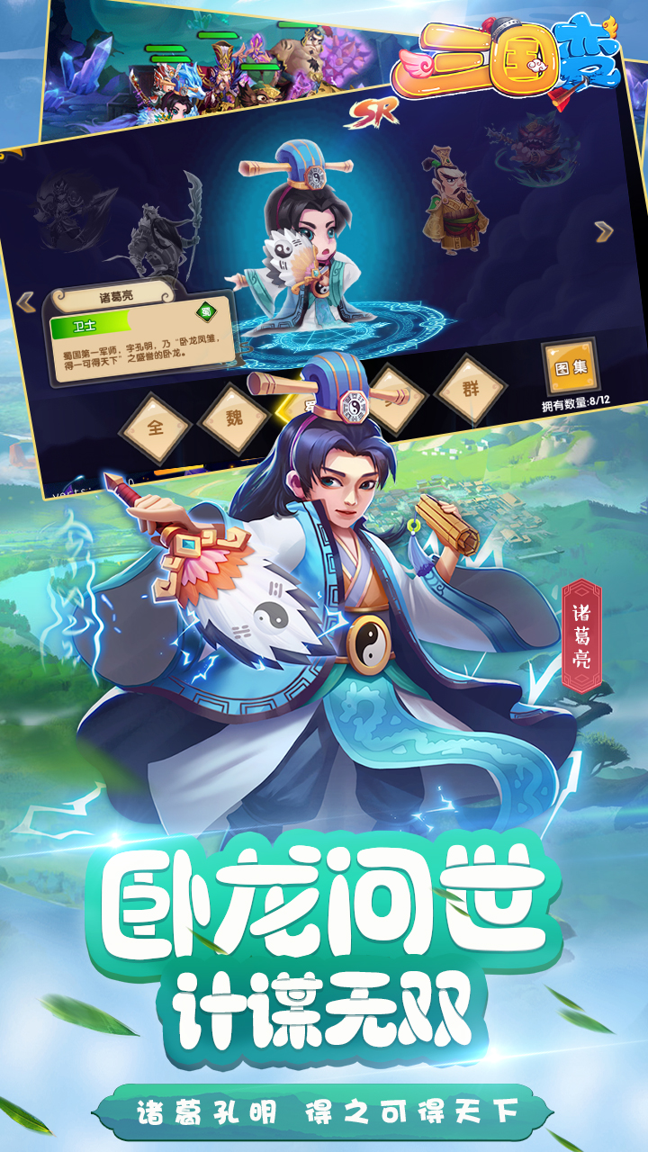 以三国创新微改编为题材的集换式策略卡牌游戏,抛弃了传统卡牌类游戏玩法,多达近200张海量卡牌收集、合成、兑换,强调牌组的组合及战斗的策略玩法。