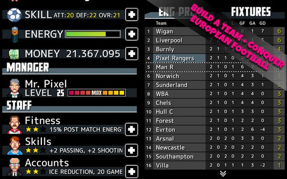 游戏采用的是像素风格的画面设计,当比赛进行时以俯视呈现,玩家可以对于场上球员的位置以及球的推进路线进行了解,并以此控制本方球员的移动和选择进攻路线。