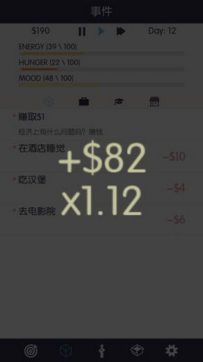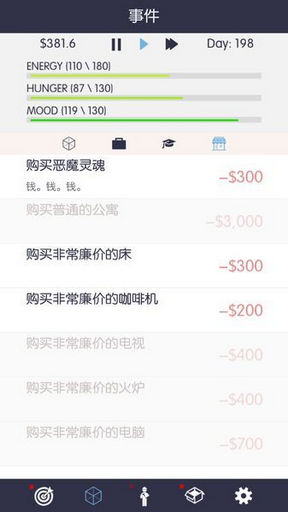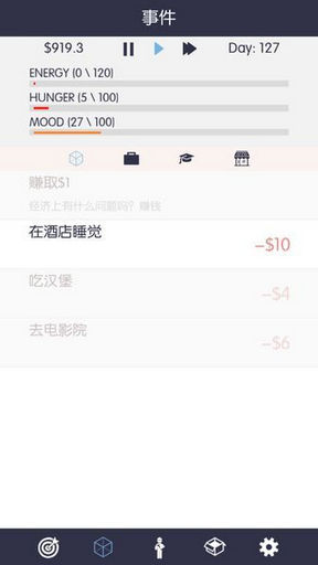 然后你有饥饿值,情感值,还有体力值去工作,你可以做你任何想做的事