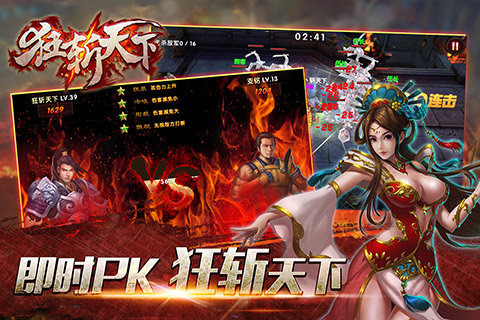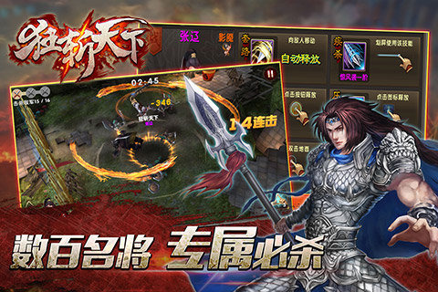 狂斩天下是一款颇具新意的动作手游,玩家在游戏中可以扮演超过四百位历史名将,亲身体古战场的短兵相接的紧张气氛。与传统动作手游不同的是,狂斩天下并没有使用虚拟摇杆系统,玩家对武将下达的所有指令,包括走位、闪避、冲锋、连招等动作,都是通过点击和划屏完成的。