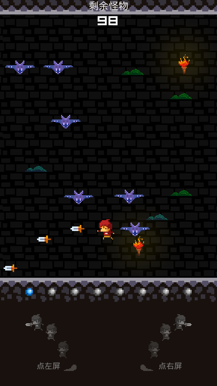 如果选的是飞刀哥,就会左右发出飞刀攻击怪物;