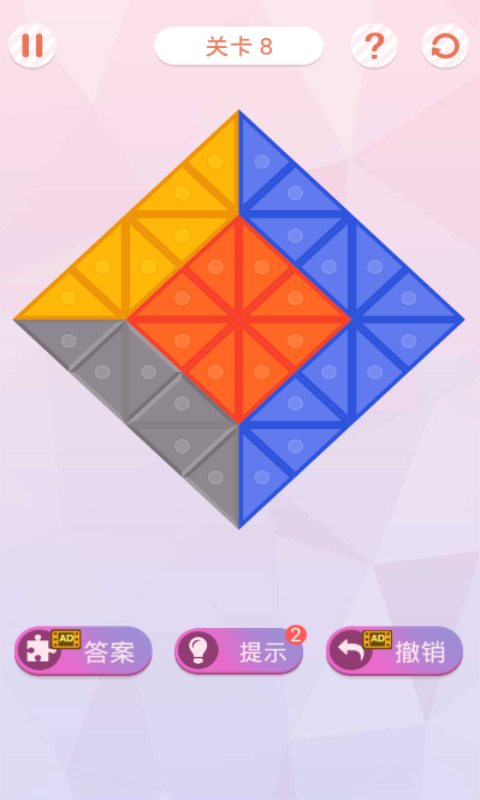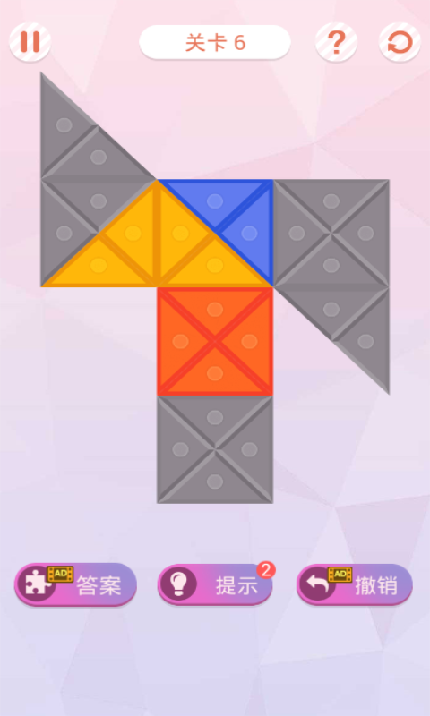 叠方块是一款休闲娱乐益智游戏,画风清新活力、色彩夺目。游戏操作简单,只需要简单的滑动方块,方块即可折叠过去,发挥你的想象力,使得方块铺满整个游戏区域即可过关。不规则的图形,对称的美感!