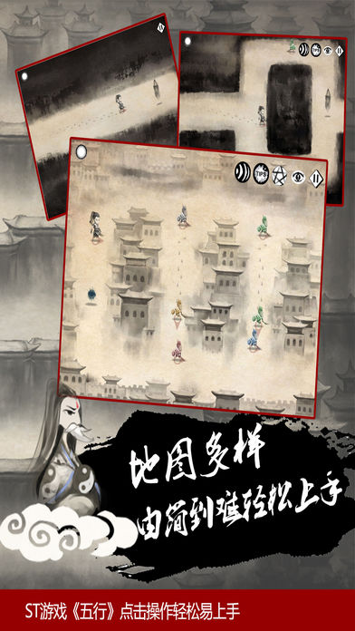 《五行》是一款有着精致水墨中国风画面同时玩法创新的益智策略型手机游戏。在游戏中玩家用手中掌握的五行元素去消灭对应元素的怪物,以达到过关的目的。在这个过程中,玩家必须对五行的相生相克有着充分的理解才能够克敌制胜。