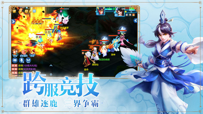 4.跨服组队对战,自由pk,多人对抗玩法,实时语音,海量玩家在线语聊,三界战场,等你来战!