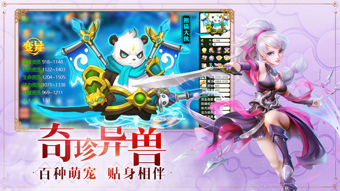 2.Q萌神兽伙伴,御器飞仙、炫酷神宠、上古神兵,不仅可以提升战力,还可以带来不同的炫酷外观,自信心爆棚!