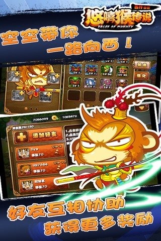 2014年最萌的Q版卡牌手游--《悠嘻猴传说》来啦!不一样的Q版形象cosplay,不一样的西游题材,不一样的取经之路《悠嘻猴传说》全新上线!【游戏介绍】:五百年前孙悟空大闹天空,被如来压在“五指山”下,究竟是谁撕掉了封条拯救了悟空,这里,你才是故事主宰者,与弟子们一起踏上西行取经之路……你将率领三大弟子,以长安城外为起点,踏上了前往西天取经的道路。一路上经过东海海岸、火焰山、无底洞等等危险的区域,遇到各种妖魔鬼怪的埋伏,吃尽苦头,历经九九八十一难,在师徒四人一心求佛的坚持下终于取得正果,成就无上功德。【游戏活动】:一.首充惊喜无限二.十天登陆送好礼三.每天签到豪礼相送 四.累计充值送VIP活动 五.论坛活动 六.锁妖塔排名活动 七.斗神坛排名活动 八.万人齐心伏妖魔,共退BOSS拿大奖 九.绝世礼品倾情发放 【游戏特色】:★特色一、正版IP授权,海量周边免费兑换★特色二、超萌Q版画风,全程声优引导★特色三、颠覆原有剧情,零门槛简单易操作★特色四、全服竞技PK,华丽炫酷的搭配阵容★特色五、全员大战BOSS,万人竞技排行★特色六、好友互相协助,获得更多奖励点击下载,现在就开始不一样的西行之路!