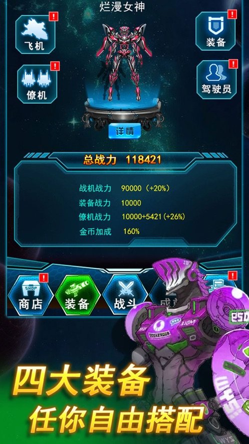 玩家成为驾驶员,驾驶你的战机在星际中自由行使,并攻击敌机,消灭入侵的敌机即可获得奖励,可不断升级强化战机等级,增强战斗力,加大火力,更有海量任务等你完成,超多免费宝箱等你领取,活动多多,玩法多多,随时投入激情战斗中。