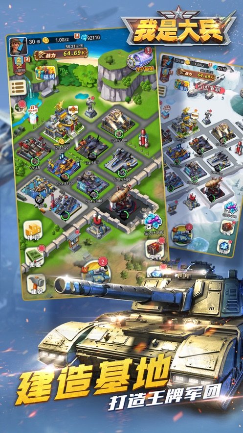 3、我是大兵游戏中不断的建设科技设施,尽早制作出强力的进攻武器,大规模的发展之后,就去扫荡周围的一切敌人。