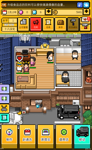 1、像素偶像成长游戏中的操作十分简单,只需要玩家不停点击偶像,就可以完成任务。