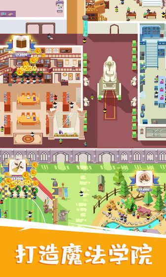 一个麻瓜应该干什么?学习魔法,成为魔法师!怎么学习魔法?去麻瓜学院!那我们要干啥?建造最强麻瓜学院啊!在游戏中,你将成为一位受人尊敬的大魔法师,什么魔法都会,什么魔法都精通。活的逍遥自在,一天晚上,你看着身边围绕着你的众多麻瓜们,他们什么魔法都不会,毫无自保能力。于是你心生怜悯,决心要创建麻瓜学院,自领麻瓜学院院长,教授麻瓜们魔法。当然,你也要恰饭的嘛。所以,你选择收取魔法金币作为酬劳,并且使用魔法金币来扩建你的学校规模,设置新的魔法教程,教授更多的麻瓜们….终于有一天,你建造了最强的麻瓜学院,成为了最强的大魔法师!