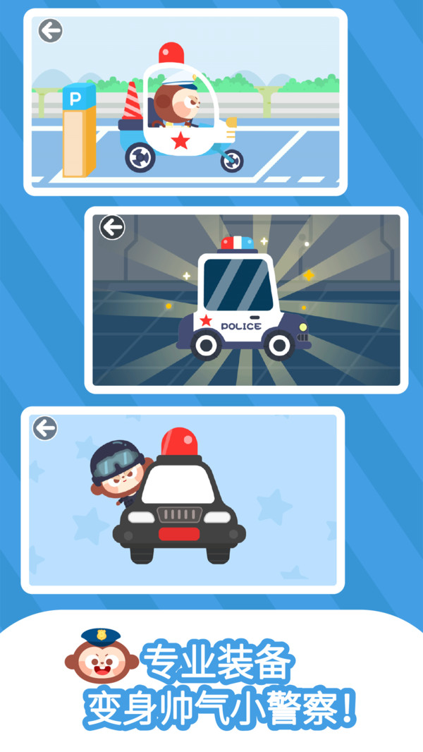 【丰富多彩互动体验】佩戴装备,装配警车,躲避障碍,寻找线索,带给小朋友丰富多彩的小警察体验;