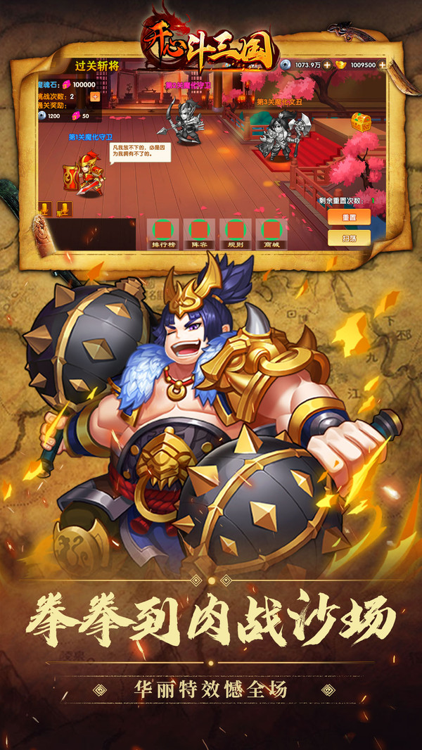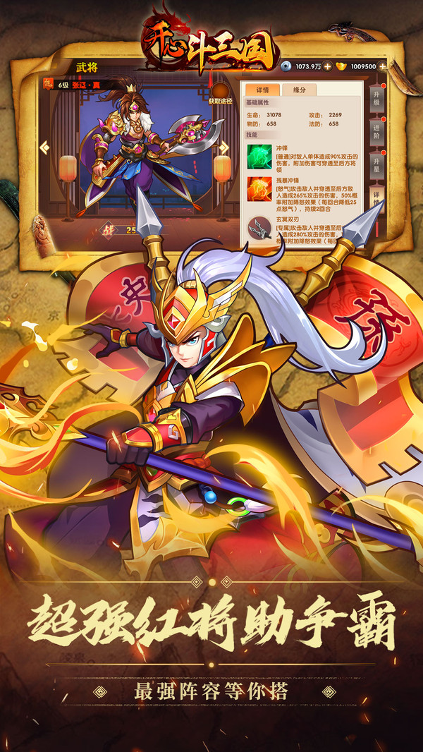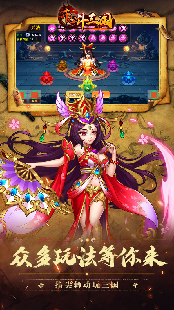 开心斗三国是一款好玩的精心策划的题材游戏,《开心斗三国》是一款三国题材卡牌手游,游戏内玩法和系统秉承“轻游戏”原则,使玩家可以更轻松的享受萌版三国的乐趣。并且根据玩家进行手机游戏时的碎片时间概念,对游戏的连贯性做出调整,让玩家随时打开游戏都可以享受最佳游戏体验。游戏内融入了众多历史名将、名城以及经典战役元素。精妙绝伦的立绘,酷炫霸气的技能。带你走进一个不一样的乱世三国,领略其中风采,在游戏中收集招募名将,培养名将为自己战斗,你将率领麾下名将开启你的问鼎之路。多样的武将培养,丰富的武将搭配,自由培养打造你的专属组合。爽快的战斗体验,还可以与盟友协同作战,参与游戏中多样的玩法,玩家在自己的阵容逐渐强大后,可抵御与征服敌对玩家。玩家可以在开战前对各个武将进行合理排兵布阵和细微调整,使用武将技能等战术。取得最终胜利!
