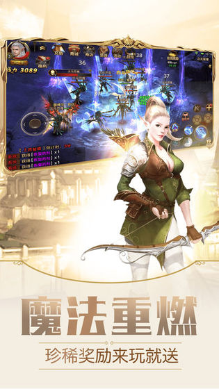 游戏一开始就有多重丰富精彩的任务让你完成,逐渐适应游戏的玩法和操作,增强角色的战斗力,每日登录还有极品神兵利器和神兽可以领取,暴增自己的战斗力,在战斗中充满成就感,一玩就停不下来。